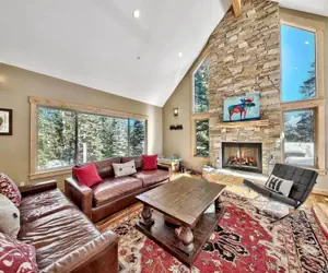 Meticulously maintained and beautifully designed, this newer custom Tahoe residence combines timeless mountain charm with luxurious modern amenities. The open-concept great room welcomes you with cathedral ceilings, a floor-to-ceiling ledgestone fireplace, hand-hewn hardwood flooring, and filtered mountain views. A built-in wine bar adds a touch of elegance to your entertaining space.