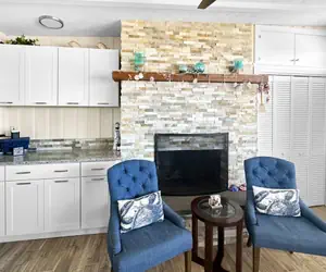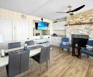 Step inside to discover a cozy and inviting ambiance, featuring a fully equipped kitchen complete with modern appliances, including a refrigerator, dishwasher, coffee maker, and cooking basics. The dining area is perfect for enjoying meals together, while the spacious living room provides a comfortable space to relax and unwind after a day of exploring.