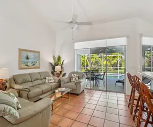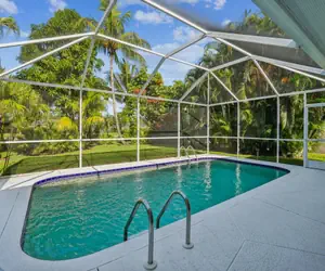 RELAXED TROPICAL NAPLES RETREAT … only 5 miles to beach!Welcome to your private escape in sunny Naples! This beautifully appointed vacation home offers the perfect blend of comfort and Florida charm, surrounded by lush, tropical landscaping.Step inside to an open and airy living space filled with natural light, designed for relaxation after a day at the beach or exploring the city. The fully equipped kitchen makes home cooking a breeze while the inviting dining and living area creates a welcoming place to together with family or friends. For your added convenience there is a laundry room and a two car garage.This well-loved 3/2 home is designed to comfortably sleep 4-5 guests. The primary suite features a Tempur-pedic king bed, en suite with double vanity, soaking tub, step in shower and a large walk-in closet. The second bedroom has two twin beds, a large closet and smart TV. The office/bedroom offers a desk and an extra long, twin bed.The moment you walk in the front door and look through the open living area to the pool and the tropical view beyond, you’ll know you’ve arrived! Push the glass sliders all the way open for true indoor/outdoor living. Enjoy dining, grilling, and lounging in the covered, screened lanai with the ambience of a small swimming pool (unheated). You’ll love the amazing view of the large, lush yard adorned with coconut palms, mango and banana trees. This tranquil setting invites you to sip your morning coffee in peace or savor an evening cocktail as the sun sets.Guests appreciate the safe, walkable neighborhood, ideal for strolling or biking. This home is conveniently located only 1 mile to a market and local restaurants. Most of Naples’ favorite attractions are within an easy 5 mile drive … pristine beaches, fine dining, premier shopping, beautiful golf courses and nature preserves.Come relax, recharge and enjoy everything Naples and our clean, cozy home have to offer.