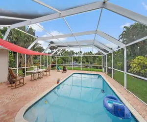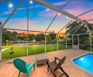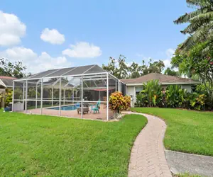 • Outdoor Oasis – With a large screened-in patio area, enjoy sunny Florida days by the private pool overlooking the canal, then gather for dinner on the screened-in lanai with peaceful waterway views and perfect for a quiet morning fishing in the canal or manatee viewing. Private fenced-in back yard perfect for families traveling with pets or children. Feel free to pick fresh bananas and mangos from the backyard trees!