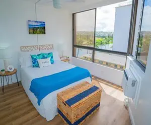 Take in stunning Ala Wai & mountain views, ocean breezes and upscale touches in our home-away-from-home, steps away from Waikiki’s iconic restaurants, shopping, nightlife and beaches. Our sun-kissed home boasts two private bedrooms, a modern full kitchen with breakfast bar, dishwasher, jack-and-jill full bath, private standing lanai and spacious living room with work desk. Our secured building offers a sunny pool deck with loungers, bbq, and outdoor lounging area. Unit offers a free, reserved parking stall, wifi, cable, ac and cable. Just off Ala Wai Blvd., our home serves as a modern and peaceful escape from the hustle & bustle of Waikiki.