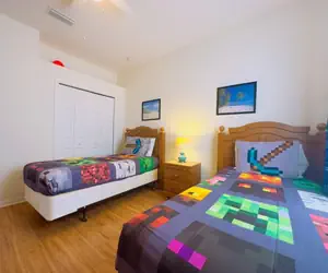 Enjoy comfort, space, and fun at this beautifully maintained and freshly painted 4-bedroom, 3-bathroom single-story home in the peaceful and family-friendly Calabay Parc community in Davenport. With a private screened-in pool, a Minecraft-themed twin bedroom, and smart TVs in every room, this home is ideal for families, groups, and theme park lovers, just a short drive from Disney!