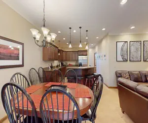 FAMILY FRIENDLY! PETS, SMOKING and BIKES ARE STRICTLY PROHIBITED INSIDE THE UNIT. Beautiful 4BR/3.5BA unit in Black Bear Crossing. This beautiful 4-bedroom townhouse will easily accommodate a large family or multi-family getaway. The first floor has a large, airy entry area with a powder room and Master bedroom with a Queen bed, and ensuite full bathroom with a shower and soaking tub. On the second floor upstairs, there are 3 bedrooms. Two of the rooms have a Queen bed, and one has a twin over twin bunk bed with a Queen bed, and 2 full bathrooms. It will be easy to feel at home in this spacious townhouse with a private hot tub, grill and only a few steps away from the ski slopes. The kitchen/dining/family room is open with a spacious floor plan for happy gatherings. Dining table seats 8. Warm up and relax by the gas fireplace after a fun day or slopes or trails. Enjoy a soak in the private hot tub off the back deck. The kitchen features stainless steel appliances and tons of granite counter space with plenty of cookware and dishes to prepare your own meals. Dishwasher, side by side refrigerator with water/ice dispenser, gas range with convection oven. Microwave, coffee pots and toaster. All bathrooms have hairdryers. This unit also has a washer and dryer and central air conditioning. Ski/bike in and out access is available weather permitting. Black Bear Crossing has a wonderful common area with a gas fire pit, a covered picnic table area with a grill, and a projector for outdoor movies to enjoy during the warmer months. There is also a bike washing station and EV charger.