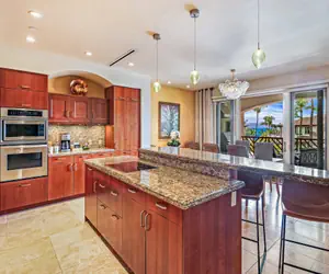 Start your mornings on the private lanai, sipping coffee as dive boats head out toward Molokini Crater in the distance. The family pool is conveniently close to the villa, while the adult pool sits just steps from Wailea Beach which is less than a five-minute stroll (about 800 feet) down a picturesque path lined with ponds and waterfalls. Prefer a ride? The concierge is happy to whisk you there in a golf cart.