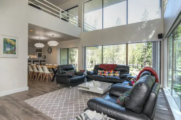 Welcome to Irish Mountain 4, where modern luxury seamlessly blends with Sunriver's rustic charm. This newly remodeled designer home offers a perfect retreat with stunning views and cozy fireplaces. Ideal for family gatherings or remote work, this property provides spacious accommodations for up to 12 guests and includes 8 SHARC passes for added fun.