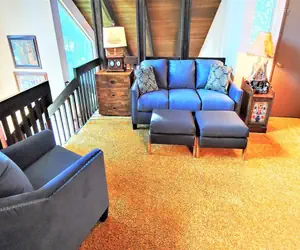 • Cozy loft area with a couch that converts to a Queen bed