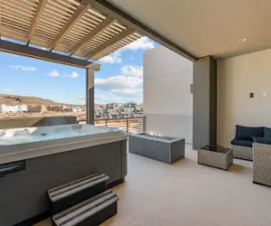 The Fish Bowl in Desert Color is the perfect place to kick back and have fun, featuring a private hot tub, fire table, and unbeatable access to resort amenities. With the Colcada Springs Resort Pool just a 1-minute walk away, every sunny day is effortless.
