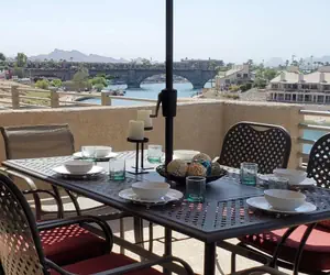 Experience Lake Havasu like never before from this top-floor, end-unit condo at the sought-after King's View Resort. This 2-bedroom, 2-bathroom corner unit boasts unobstructed panoramic views of the iconic London Bridge, Bridgewater Channel, and the sparkling Lake Havasu, all from your private balcony.