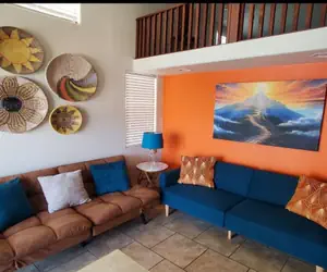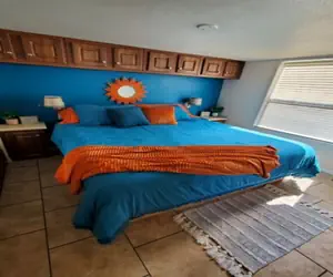 Prime spot ON the CALIFORNIA SIDE in RIVER LODGE RESORT! Amazing views, huge multi level patio, boat parking, and a carved out beach to chill! Not all river front properties are created equal and this spot is a gem. Moor your boat out front and launch is a couple hundred yards away. No boat? No problem! Enjoy the beach, the patio, beautiful views and great fishing right in front of the house. Located in River Lodge Resort this tiny home packs a big punch! With a master, loft, bathroom, living room, kitchen, and 3 AC units, this house will surely meet all your getaway needs! 1 King, 2 queens, 2 TV's with Roku for streaming, WIFI, surround sound audio with Bluetooth connection, and comfy couches. Your vacation is waiting!