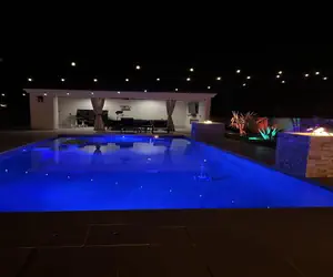 custom-built pool. We even have an upscale cabana that includes seating for many,