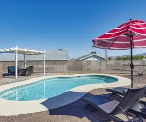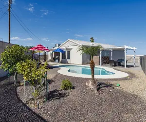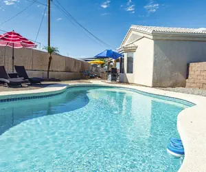 Nestled in a cul de sac just off Kiowa N. and a straight shot to Windsor launch! There's plenty of parking in the empty lot on side house secured behind gate. This trendy property is set up with (1) King, (2) Queens and a set of KIDS ONLY bunk beds! You can be a family with kids and enjoy this pool home or three couples with a few kids. This house is available every season, so pick a time, book on-line and come visit Havasu again!! TPT#21328823