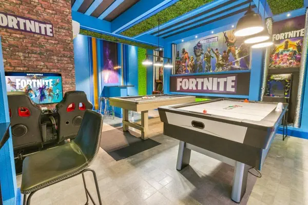 - Fortnight-Themed Game Room including Pool Table, Air Hockey, Xbox and PS4