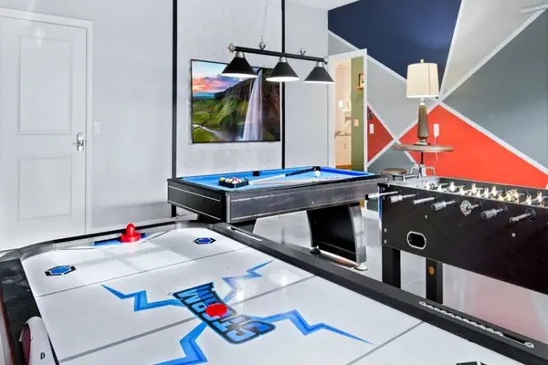 - Game Room including Pool Table, Air Hockey, and Foosball