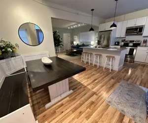 86 Broadway is an entire house consisting of three 2 bedroom apartments all with full kitchens, pull out sofas, and private bathrooms. Located in the more locally populated Broadway neighborhood, this dog friendly building is just a seven minute walk to Newport’s waterfront, although the neighborhood itself is home to many restaurants and coffee shops. This is the perfect place for a group who wants to be together, but also enjoy some privacy. See below for a breakdown of each individual unit.