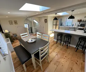 This sprawling renovated whole house with bright, airy rooms, 6 queen bedrooms + pull-out sofas (sleeps 13), TWO full kitchens ready for group cookouts or late-night snacks, dining areas for big meals, 4 full baths (gorgeous glass showers) + 2 halfs, multiple living/TV hangout spots, private deck for outdoor hangs, mini-split AC/heat, high-speed WiFi, hardwood floors, luxe linens/towels, hairdryer, all the essentials. Professionally cleaned spotless; dog only friendly. Plenty of room to spread out and have fun!
