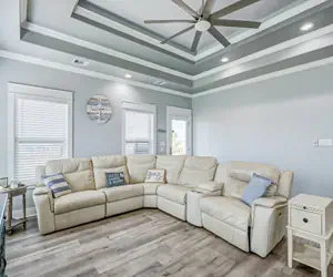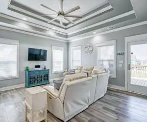 Hannah Cabana's pet-friendly policy ensures that no family member is left behind. For a $200 non-refundable fee, you can bring your furry friend along to enjoy the vacation, creating lasting memories together. Inside this beautiful home, you will be taken in by the spacious living room with ample seating for all your guest and family. With WIFI provided, streaming your favorite TV movies and shows or staying connected to all your devices will be a breeze. You will enter the password and login information provided in a picture frame near the living room TV. The fully equipped kitchen is open to the living area, making conversations and laughter shared by all! The well-appointed bedrooms offer cozy beds and tasteful decor, creating a soothing atmosphere for a good night's sleep. Bedroom one has a king bed and an attached bathroom with a step-in shower. Bedroom two has 2 full/queen bunk beds, and bedroom three has 2 queen beds. The guest bathroom has a tub/shower combo providing convenience and comfort during your stay. Imagine sitting on the spacious deck watching a glorious sunrise, while sipping your coffee with seagulls calling "good day" to you! Downstairs, you will find lots of gathering space around the Tiki Bar or picnic table, while delicious entrees are grilled on the charcoal pit. Your furry friends can run and play in the enclosed yard area. When the waves and sand call, you are just steps away. You also have vehicle and golf cart accessibility to the beach. After a day of fun in the sand, rinse off in the sand shower. Its spacious layout, and stunning beach views make Hannah Cabana an ideal choice for those seeking a comfortable and enjoyable vacation experience.