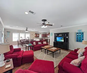 Surf’s Up has all the amenities to make your stay a wonderful experience. The stocked kitchen has everything you need to cook your favorite meals for your family and friends. The bedrooms are comfy and cutely decorated in coastal decor. Bedroom one ihas a queen bed, bedroom 2 has two queen beds and bedroom three has two twin/full bunk beds. The primary bedroom has an attached bathroom. The living room has ample seating for families to gather and watch their favorite shows or movies with DISH. This home has WIFI to keep you connected with all your devices. In the morning, grab a cup of coffee, step out on the deck facing the Gulf of Mexico, and soak in that beautiful beach sunrise! Soon the waves, seagulls, and family will be calling out to you to join in the excitement of the beach! Downstairs, you will find a picnic table and charcoal grill to BBQ the perfect meal after a long beach day! The kids will enjoy fishing in the slough behind the house! When you are ready to go to the beach, there is direct access just a street over via Golf cart or vehicle. After having a blast out in the sun, don’t forget to rinse off in the outdoor shower! Surf's up will help you and your family make beach memories year-round.