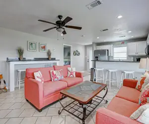 Beachy Gem is a cute home in the heart of Crystal Beach near the Big Store, Waterslide, and Crystal Beach Plaza for all your shopping needs. This home has many amenities to make your vacation memorable. The granite, stainless steel kitchen has all the basics to make cooking meals easy while on vacation. This home is sure to be a hit for your family! This home has WIFI. You will find the login information located near the TV. Stream all your favorite shows and movies. This home allows 6 vehicles to park in its driveway. Downstairs, you will find a picnic table and lots of covered space in the shade. You will find a charcoal grill in the closet behind the garage. After a fun day at the beach, you will enjoy rinsing away sand and sunscreen in the outdoor shower. This home is a rare "gem" that you'll be glad you discovered! All three bedrooms have a queen bed to enjoy. This home is pet-friendly with a $200 pet fee.