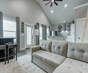 Life's a Beach is a newly built home located in The Villas at Roll Over Bay, in Gilchrist. The open-concept living and kitchen area will make you feel right at home. The kitchen is fully stocked with all the cooking basics needed to prepare meals for your family. The island bar provides a food prep area and seating for dining. In the living room, you'll find comfortable seating for everyone to relax and visit. It also has a sleeper sofa to accommodate two people. This home is equipped with WIFI. You can stay connected to all your tech devices and stream your favorite shows and movies on the Smart TV. You will enter the login and password information provided in a picture frame near the TV in the living room. There are 2 bedrooms on the main level. Both bedrooms have a king bed with an attached bathroom. There is a queen bed in the loft area. The ladder to the loft area is steep and may not be suitable for small children. Outside on the oversized deck, you will have a view of beautiful sunrises, sunsets, and the beach. You will enjoy dining and relaxing on the deck at the picnic table and raised deck chairs. (Not in the Photos) This neighborhood also has a newly built playground and a swimming pool area available for your use. (Please follow all rules when using these facilities. There will not be lifeguards on duty at the pool area. )