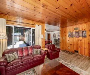 Where Vintage Tahoe meets modern amenities. This cabin features 3 bedrooms, 2 baths, pool table in the garage/game room and an open cozy living room with a new woodstove insert. The living room is a perfect spot to gather after a day exploring Lake Tahoe.