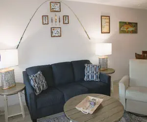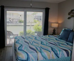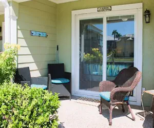 Inside, the condo features an open-concept living and dining area filled with natural light and designed for comfort. The spacious bedroom provides a relaxing escape with ample closet space, while the full bathroom is clean and well-appointed. The kitchen offers plenty of cabinetry and workspace, making it easy to prepare meals after a day on the water. Large windows allow you to enjoy waterfront views right from your living space. Walk out the back patio to the canal where visitors can fish directly off the bulkhead. If you have a boat, slips are available to the right of the building. Kontiki visitors have access to the 800-foot fishing pier located behind the condo building, and past the Bayfront Condos at Kontiki. There is an adjoined fishing bridge between the Kontiki Beach Resort building and the condos behind it. There are fish cleaning stations on both piers and barbecue grills located on the property near the gazebos for outdoor cooking.