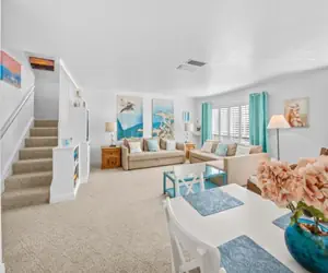 This two-story, two-bedroom townhouse offers a bright, open layout designed for relaxed coastal living. Thoughtfully maintained and continually updated by the owners, the home is comfortable, clean, and welcoming from the moment you arrive. New carpet was installed throughout in 2021, and new windows were added in 2020, enhancing both comfort and energy efficiency. Ceiling fans, central air conditioning, and heating keep the space comfortable year-round.