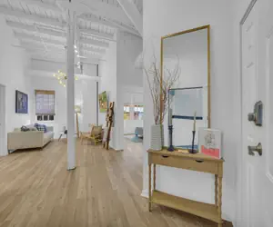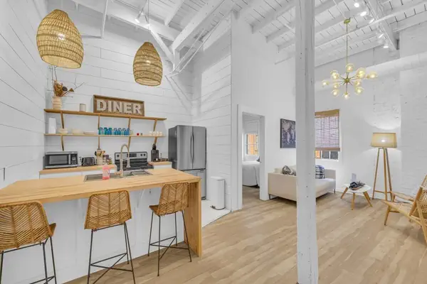 Just off the living room, the fully equipped kitchen features stainless steel appliances, plenty of counter space, and a bar that seats three. It's perfect for easy breakfasts, quick snacks, or a laid-back drink before heading out for the evening.