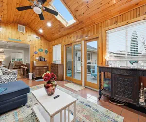 Inside, enjoy an open layout with updated flooring, a spacious living area, and a bright sunroom with skylights that’s perfect for relaxing after a day in the sun. The home is well suited for short term stays, offering comfortable bedrooms, a practical layout, and plenty of space to unwind together. Recent updates throughout give the home a clean, modern feel while maintaining a warm and welcoming atmosphere. Sunroom has a pullout sofa which will sleep one extra person which ups the total to sleep 8 if needed.