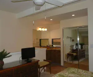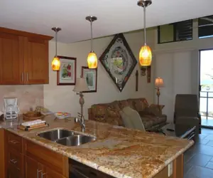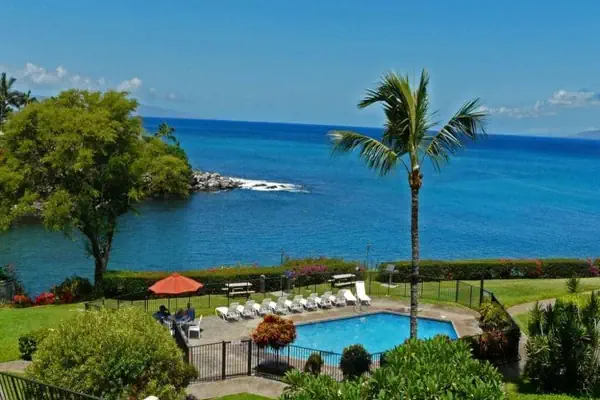 Unit C38 is a spacious ocean-view 2-bedroom, 2-bath loft-style condo (958 sq ft interior, 1,059 sq ft total) with a 104-112 sq ft lanai featuring a solar sun shade—perfect for shaded enjoyment of panoramic Pacific views, whale watching, and vibrant sunsets. Equipped with full-unit air conditioning and ceiling fans, it offers a king bed in the loft, queen bed in the enclosed bedroom, queen hide-a-bed sofa (sleeps 6 comfortably), and two TVs. Both bathrooms feature showers only. Ideal for families or groups seeking elevated Maui serenity steps from snorkeling coves, resort pools, and renowned Napili Bay Beach.
