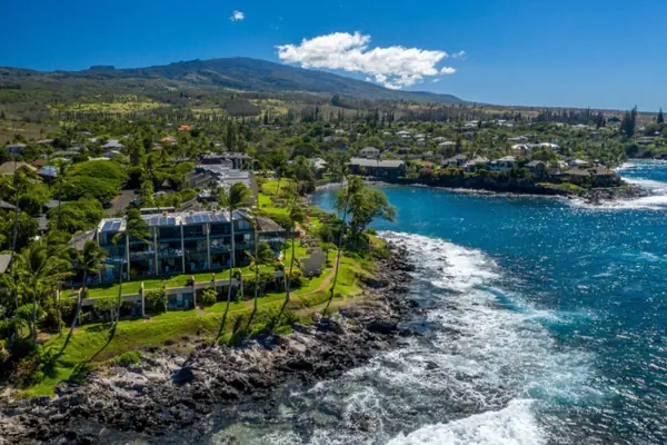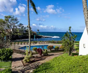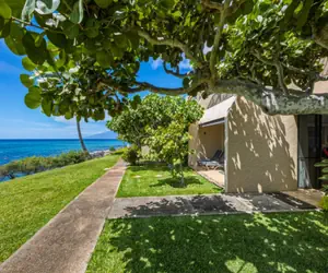 Unit A17 at Napili Point Resort is a 1-bedroom, 1-bathroom oceanfront condo in Maui, Hawaii, with 602 square feet of interior space plus an 86-square-foot lanai. It sleeps up to four people with a king bed in the bedroom and a queen hide-a-bed sofa in the living area, and includes air conditioning, ceiling fans, two TVs, and a shower (no tub). The prime oceanfront location offers direct views ideal for turtle spotting and sunsets in the relaxed Napili area.