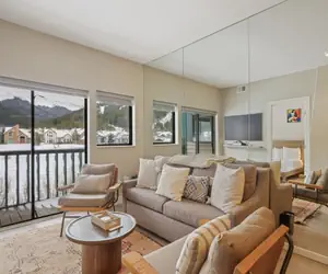 1 bedroom, 1 bathroom condo. King bed in bedroom, sleeper sofa in living room. Full kitchen. Wood burning fireplace, balcony. Sleeps up to 4 people.