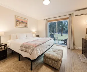 Two private patios open to a grassy common area, extending your living space outdoors. One patio includes a grill, ideal for easy meals and laid-back evenings. Free WiFi and parking are included for a smooth, stress-free stay.
