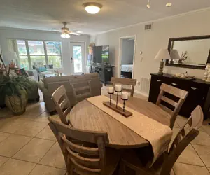 Eat, Beach, Sleep, Repeat**Practically Beachfront — Without the Beachfront Price!Why pay beachfront prices when the beach is literally steps away? Enjoy a short walk to the BAYSIDE entertainment zone for live music, great food, ferris wheel, go carts and much more or enjoy one of the ISLAND'S newest pickleball courts. This beautifully furnished 2-bedroom, 2-bath condo is located directly across the street from a beach access, offering gorgeous beach views and effortless ocean days—no long walks, no hauling gear for blocks.Spend your mornings on the sand, your afternoons swimming in the ocean, and your evenings unwinding on the gated poolside patio, drink in hand, reliving the day’s adventures...YOUR SpaceDesigned for comfort and easy coastal living, this condo comfortably sleeps up to 6 guests and is perfect for families, couples, or friends traveling together. Primary Bedroom: Queen-sized bed, private en-suite bathroom, TV, and a lovely view of the lush pool area Guest Bedroom: Two full beds, TV, and easy access to a full neighboring bathroomLiving & EntertainingKick back in the open, spacious living area featuring a flat-screen TV and plenty of room to relax after a beach day. The dining table seats six—perfect for family meals, game nights, or planning tomorrow’s adventures.Stay active during your getaway with access to a private pickleball court, perfect for morning rallies or evening matches.The fully equipped kitchen is ideal for entertaining, with: