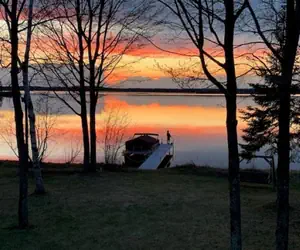Loon Song sits on a west-facing stretch of sandy shoreline, giving you front-row seats to spectacular Northwoods sunsets with golden hours spent on the dock, the firepit warming behind you, and loons calling across the water.