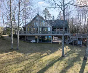 Welcome to Loon Song, a private 4-acre Northwoods lake home on Wisconsin’s renowned Lost Land Lake. One of the region’s legendary quiet lakes, free from heavy boat traffic and protected for peaceful recreation. Nestled among towering old-growth red and white pines, this serene retreat offers a rare blend of sandy shoreline, wide-open lake views, and deep, restorative stillness.