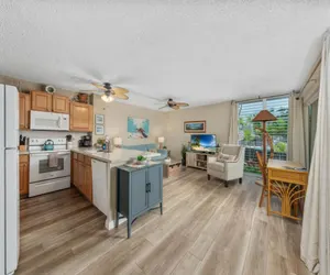 Step out onto your private lanai, where the gentle sound of waves provides a soothing backdrop to your stay. Here, you can savor your morning coffee while soaking in the stunning ocean views, or perhaps enjoy a tranquil evening under the stars. The villa’s well-appointed amenities include a fully equipped kitchen, wireless internet, and a cozy living space with a Smart TV.