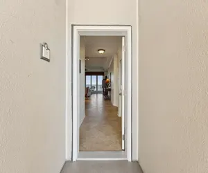 The fully equipped kitchen is a culinary delight, complete with modern appliances including a refrigerator, microwave, dishwasher, and coffee maker, ensuring you have everything you need to prepare delicious meals. Enjoy your culinary creations at the dining table or take your meals outside to the private balcony, where you can savor the fresh ocean breeze.