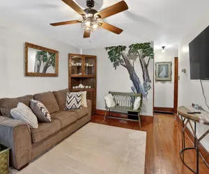 Inside, the home offers a cozy layout ideal for couples, small families, or history lovers looking for a memorable stay. The living spaces are inviting and thoughtfully curated, blending classic details with everyday comfort. Each bedroom provides a peaceful place to rest, while the home’s historic character adds a sense of place you won’t find in a typical rental.