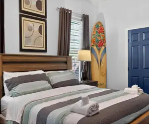 This newly renovated 2-bedroom, 2-bathroom home provides comfortable sleeping for up to 6 guests across premium beds. The primary bedroom features a king-sized bed and an attached bathroom. The second bedroom is configured for flexibility with one queen bed and one bunk bed (twin-over-twin), ideal for families or groups.