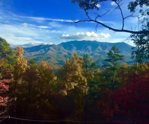 A Tree Top View sits in a quiet, wooded hillside residential area on the east side of Gatlinburg, giving you that true “mountain cabin” feel—privacy, elevation, and big views—while still being close to town. You’re about 2.2 miles from Downtown Gatlinburg, so it’s an easy drive to the Parkway’s restaurants, shops, attractions, and seasonal events without having to stay in the middle of the bustle.