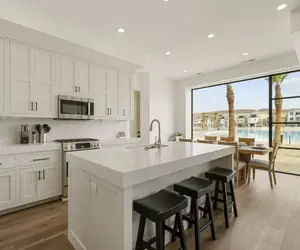 Pearl Beach A and B at Desert Color offers a rare opportunity to enjoy double the space right on the lagoon with direct beach access just steps from your doors. With six beautifully designed bedrooms and stunning water views throughout both homes, this combined retreat creates the perfect setting for larger groups!