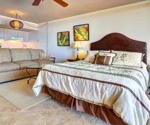 Fantastic penthouse ocean views from this condo on the ocean at Kahana Bay. Decorated in a tropical theme, it makes a relaxing vacation for a couple or family of three. Both the kitchen and bathroom (no tub) have been remodeled with new appliances and fixtures including a washer/dryer. Enjoy the ocean front pool area right on the ocean. Royal Kahana is an ocean front resort and walking distance to shops and restaurants including Maui Brewing Co, China Boat, Dollie's Pub and Cafe and the Beach House Kahana. We offer free Wi-Fi in our condo. Phone charges will apply to all calls.