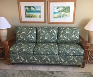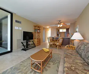 Ocean front on North Ka'anapali beach. An ocean front bedroom allows for a greater view in this nicely appointed Standard unit. Watch TV in the living room or in the bedroom. Full bathroom remodeled with large walk-in shower and tile flooring. An in-room safe provides a secure place for your belongings.
