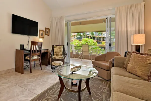 Remodeled! Garden and resort views at this 1 bedroom-loft style condo in the Banyan Building at the beautiful Ocean front resort of Maui Kaanapali Villas. Our condo is nicely updated and furnished. Watch your favorite DVD on the 42 flat screen TV downstairs or the 32" TV in the bedroom. Bring your i-pod and listen to your favorites on the i-pod docking station. Accommodates up to 4 people with 2 side tilt twin beds in the living room and a second bathroom downstairs. Beach chairs, toys and boogie boards are also included.