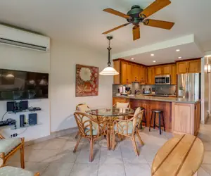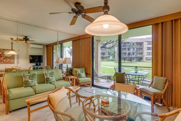 The lanai (balcony) is a great place to begin planning your day of adventure and has seating for four guests.