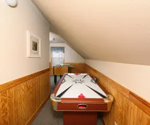 The chalet welcomes you with a warm and inviting atmosphere, featuring a cozy indoor fireplace to gather around on cool evenings. Enjoy the modern convenience of high-speed WiFi and air conditioning, ensuring a comfortable stay no matter the season. The game area promises endless entertainment, while the outdoor hot tub offers a perfect spot to soak and stargaze.