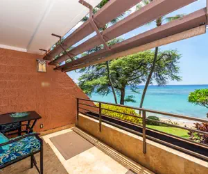 Private lanai just steps from the water — ideal for coffee, cocktails, and whale watching in season