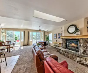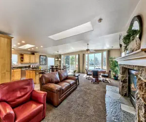 Treat yourself to the ultimate Tahoe getaway in this spacious waterfront home, perfectly designed for comfort, relaxation, and unforgettable memories. With 5 bedrooms, 4 bathrooms, and over 3,000 sq ft of living space, there’s plenty of room for everyone to unwind and enjoy. VHR Permit #332557The SpaceThe open-concept upper level features a fully equipped kitchen, large dining area, and two inviting sitting spaces—perfect for gathering with family and friends. Expansive windows showcase breathtaking views of the water and Mt. Tallac, creating the perfect backdrop for your stay. Downstairs, enjoy cozy evenings with a pool table and spacious entertainment area, or step outside to your private hot tub and private boat dock for direct lake access and classic Tahoe fun.Well-behaved pets are welcome (max 2, separate pet fee applies).Sleeping ArrangementsMaster Bedroom (Upstairs): King bed • Gas fireplace • Private ensuite bath with soaking tub + showerBedroom 2 (Upstairs): Queen bed • Shared bathroomBedroom 3 (Downstairs): Queen bed • Shared bathroomBedroom 4 (Downstairs): Two Full beds • Shared bathroomBedroom 5 (Downstairs): King bed • Shared bathroomAmenitiesComplimentary WiFiPrivate Hot Tub + Pool TablePrivate Dock for easy water access2-car garage + 2 driveway spaces (max 4 vehicles)