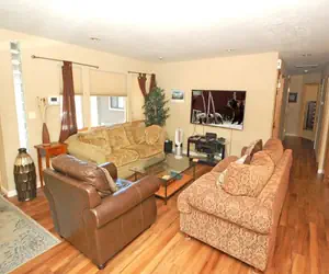 After a day of adventure, relax in the private hot tub or unwind with a movie on one of the LCD TVs. Occupancy allows for up to 6 adults and 4 children under the age of 13.