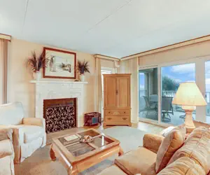 3 bedrooms; one with a king bed, one with queen bed, and 2 twin beds in the third